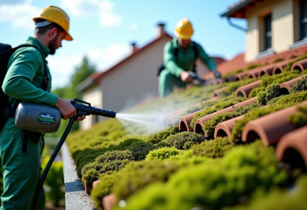 L’utilisation de produits anti-mousse spécifiquement formulés pour les toitures est une solution efficace à long terme. Optez pour des produits homologués qui respectent les normes environnementales en vigueur. Ces traitements s’appliquent généralement à l’aide d’un pulvérisateur à basse pression, en couvrant uniformément l’ensemble de la surface du toit.